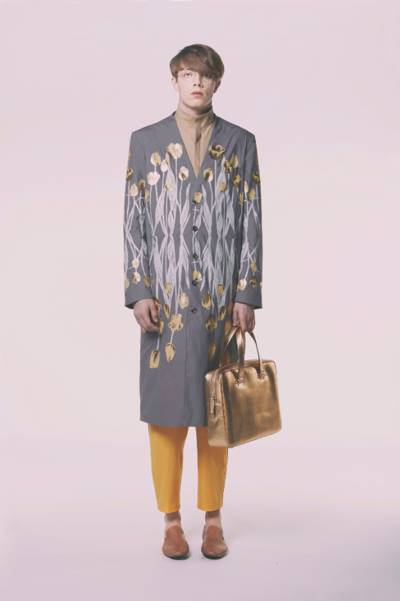 过以下几点以表达“灵魂伴侣”的定义:男女装结构和设计元素的融合;不同材质的缠绕和拼接;以及对复古服装廓形、设计元素的再摄取和运用(以表达现代人的灵魂都是古代人灵魂的分裂和传承的概念)。