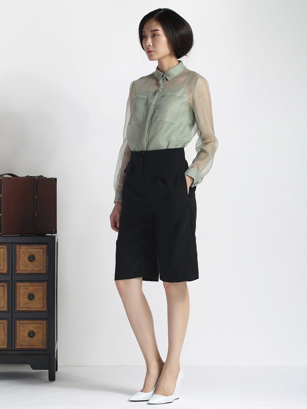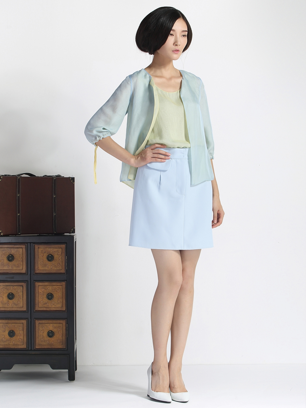14春夏系列以淡雅色系为主基调,清新的颜色,给人以美好的心情。整体色彩给人的第一感觉是自由、清新、舒适的。天然质感的面料成为环保替代的选择之一。柔滑处理让衬衫同时满足女性工作时段/平常生活中的白天穿搭需要。同色系的拼接使整体更显质感,水溶绣花的点缀,衬托出女性优雅的气质,领口的细节设计,小装饰的点缀,创意与知性的完美结合,极致的展现了新时代女性对时尚的追求。